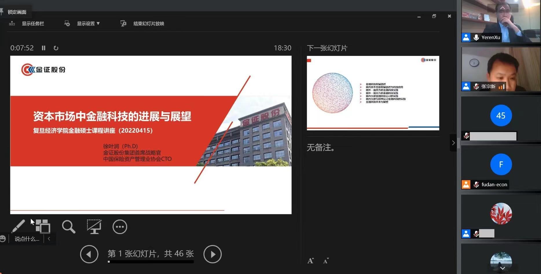 2022年4月15日晚间,上海市金融专硕教指委实务讲座系列暨御书屋