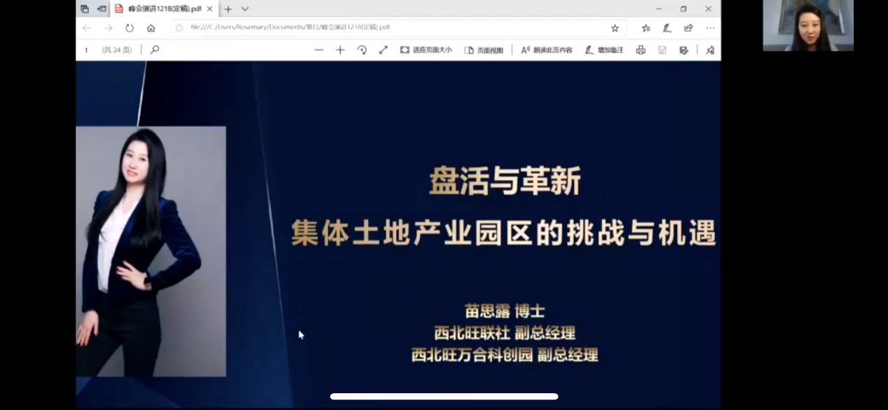 上半场的第三位演讲嘉宾是北京市西北旺万合科创园常务副总经理苗思露女士,她和大家共同探讨了“集体土地产业园区开发与运营中的税收问题”,苗女士指出2019年通过的《中华人民共和国土地管理法》修正案为集体土地进入市场带来了新机遇,集体土地产业园区在差异化竞争中的优势在于集体土地地价较低,在相关手续上也具备深耕基础,而挑战在于融资贷款和招商运营难。苗女士随后分析了集体土地产业园区建设中的税务筹划问题,给同学们带来了全新的思考和启发。