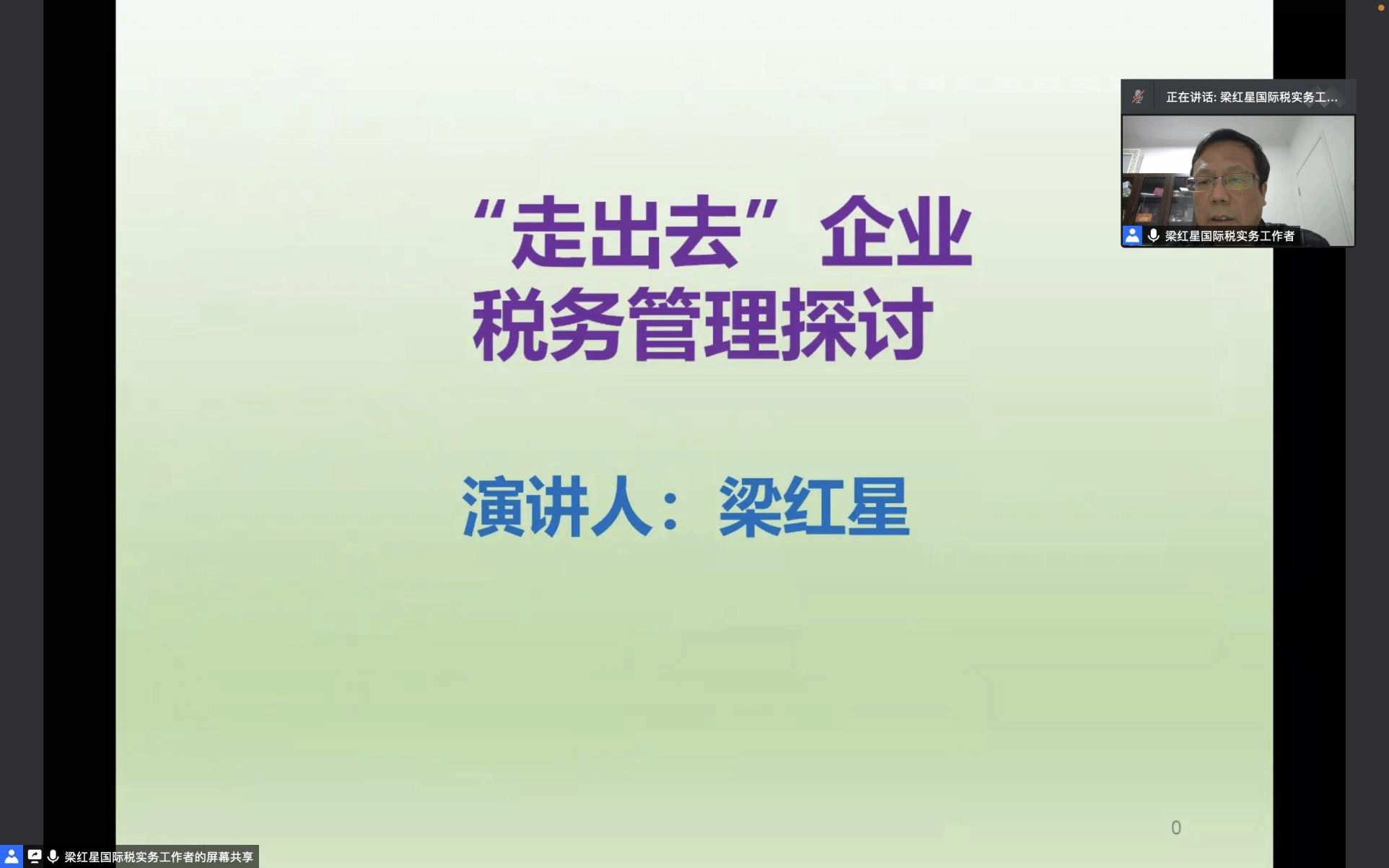 讲座伊始,梁老师简要介绍了我国“走出去”企业正面临的税务合法合规的挑战,主要是来自东道国税制和征管变化、国际反避税合作加强以及国内合规要求趋严这三重挑战。此外,梁老师还分享了他所总结的境外税务管理的原则,即“合法合规,务实担当;节税降费,赋能增值;事前介入,全程跟进;全员参与,简洁有效。”