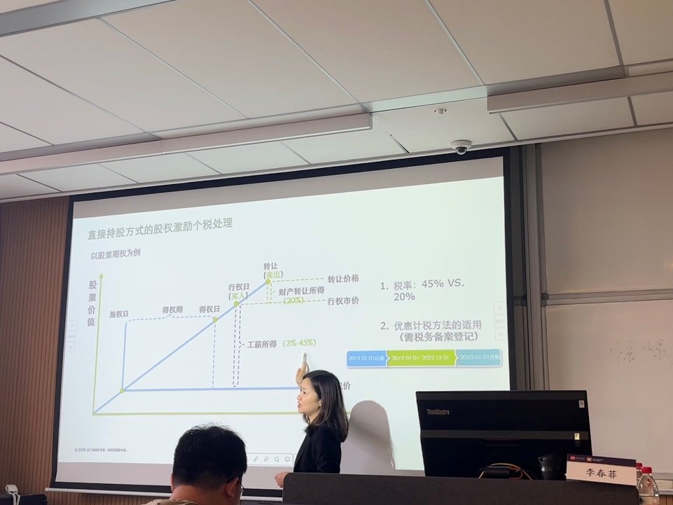 讲座伊始,李老师开门见山地指出,股权激励在我国各行各业中十分常见,且在税务稽查中容易受到重点关注。她提到,在“大众创业、万众创新”的政策背景下,大量海外高水平人才来到国内创业,或加盟初创公司,股权激励成为留住人才并激发其主观能动性的有效措施。同时,李老师提出,中国企业在实施长期激励时,面临着公平性、激励方式的选择、激励和约束对等、激励成本控制等多方面的挑战。