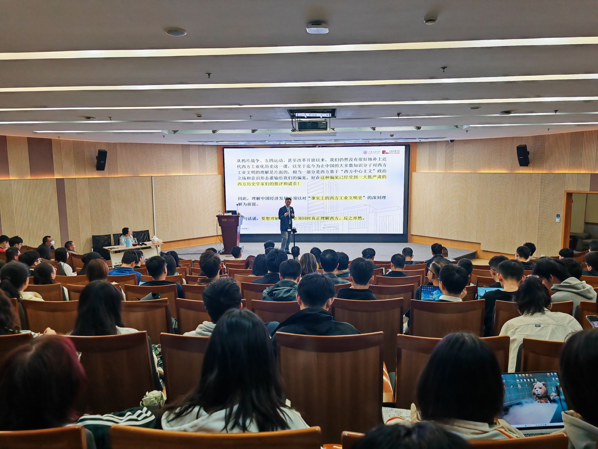 在互动问答环节,学生们积极参与,踊跃提问,文老师耐心细致地回答了每个问题。作为结语,文老师基于自己多年的研究心得告诉同学们,中美竞争的本质是文明冲突。如恩格斯所言,“资本主义生产,只有中国尚待它去征服了,但当它最终征服中国的时候,它却使自己在自己祖国的存在成为不可能了。”