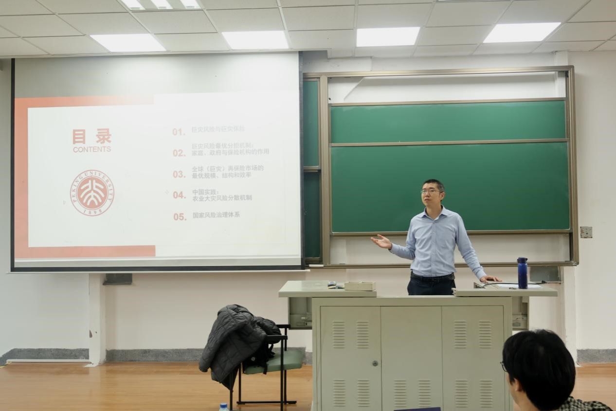 随后,贾老师聚焦中国实践,对中国农业保险大灾风险分散体系进行了评估,发现中国在风险分散方面表现良好,但在持续经营、高效运行和合理激励方面存在不足,并提出有针对性的建议。