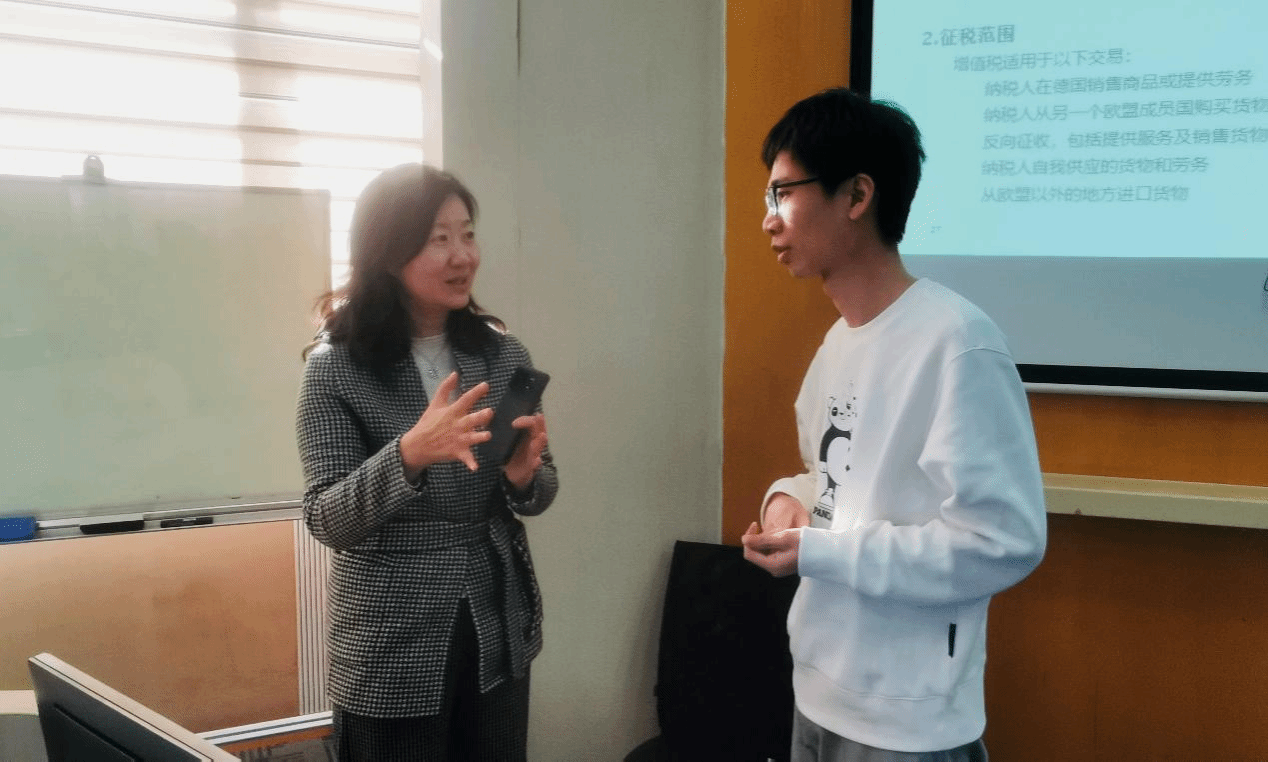 讲座伊始,郝老师介绍了德国的基本信息,为后续深入讲解德国税收体系打下基础。她详细解读了欧盟及欧盟指令,特别是增值税指令、利息和特许权使用费/专利指令以及反避税指令,并重点分析了母子公司指令。郝老师指出,根据母子公司指令,欧盟国家符合条件的母子公司之间的股息跨境支付可以实现免税,并通过中国公司间股息分配相关税收规定比较加深同学们对国际税收规则的理解。