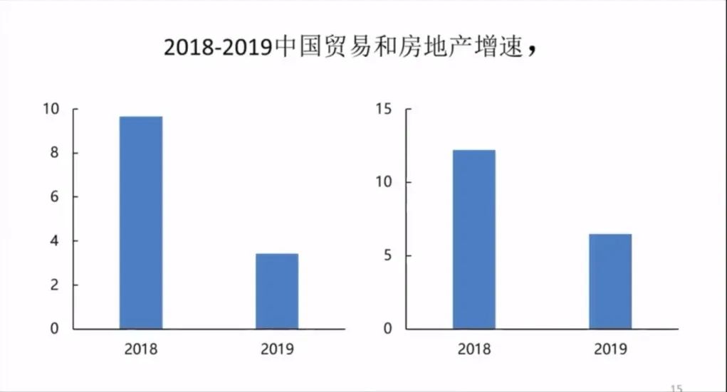 但是反弹是客观存在的,我觉得这是教训。我刚才讲到我们现在和世界比,差别很大。大家可以看到中国的贸易从2018年的9.6%下降了2019年的3.8%左右,中国房地产的销售增速也12.2%下降到了6.5%左右。我们整个的趋势是在一个下降的周期,而不是在一个上升的周期。