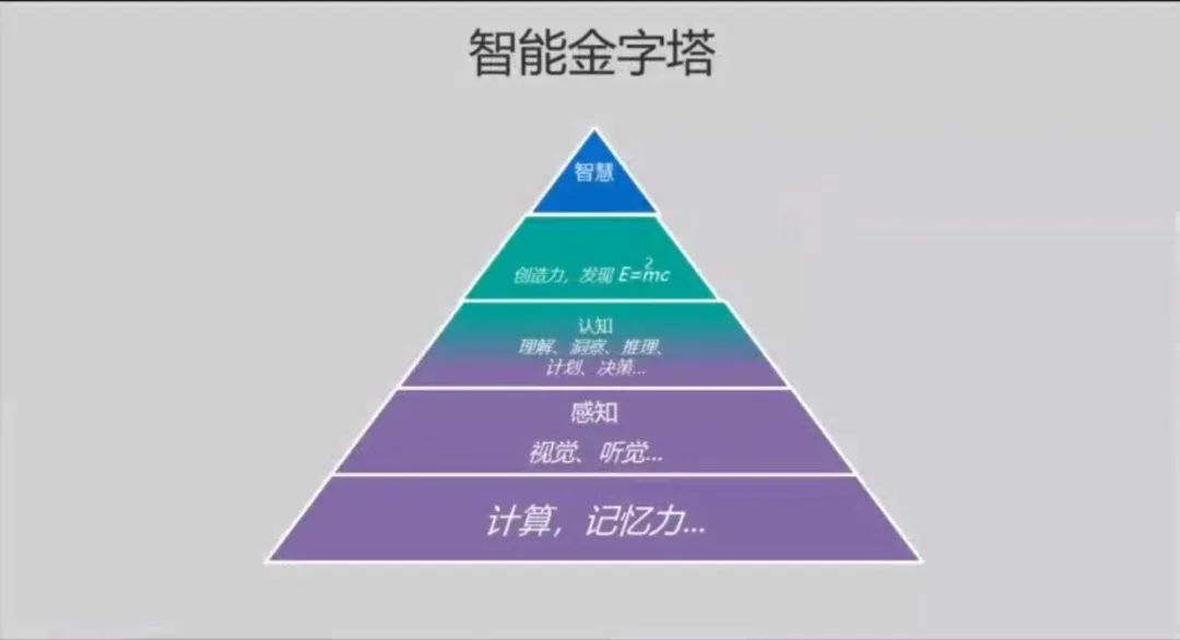 我们做了一个智能的金字塔,在底层的是计算和记忆力,现在基本都已经是计算机化了。