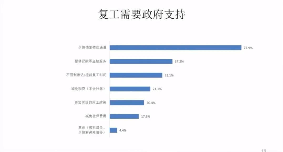 那么从现在来看,当前复工需要政府支持的是什么?