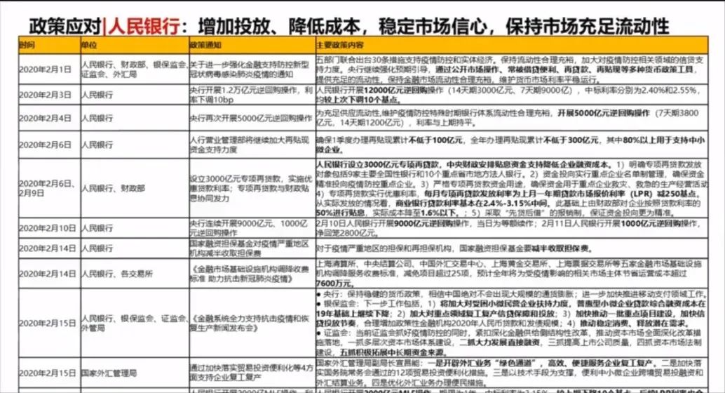 在这个情况下,政府已经出台了一系列的政策,我们可以看到人民银行从2月1日开始,对流动性,对贷款,对贷款的利率水平,对专项贷款的安排,都做了一系列的政策。