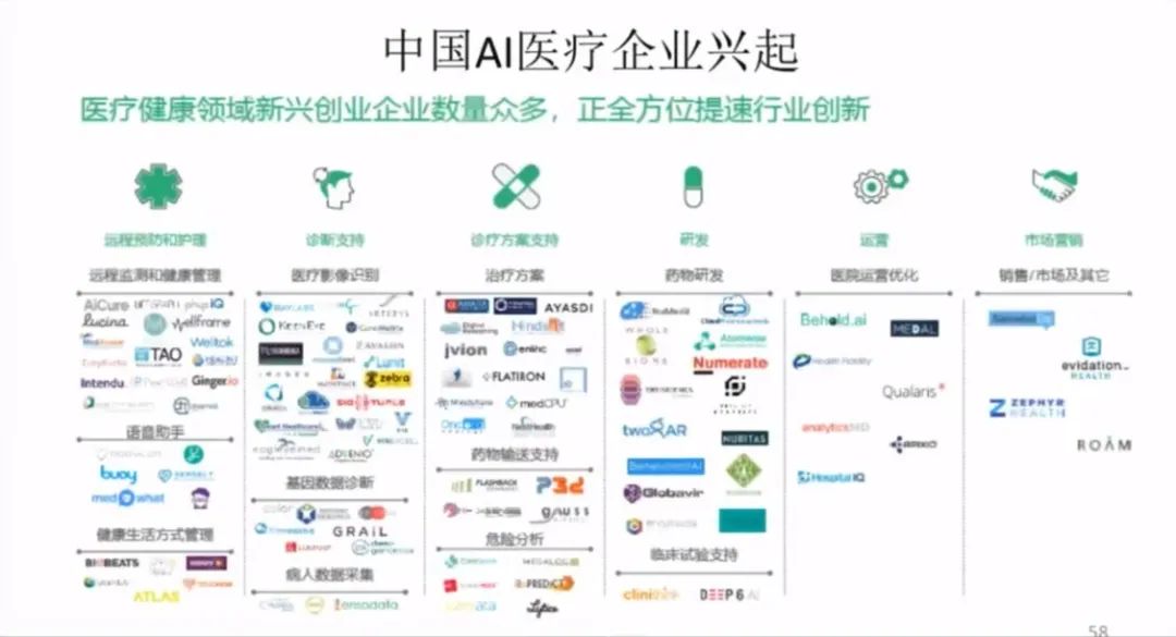 我们把中国已有的医疗企业他做了一张图,大家可以看到医疗现在大部分还处于远程监测的健康管理阶段——这一次在疫情中发挥很大作用这一块。