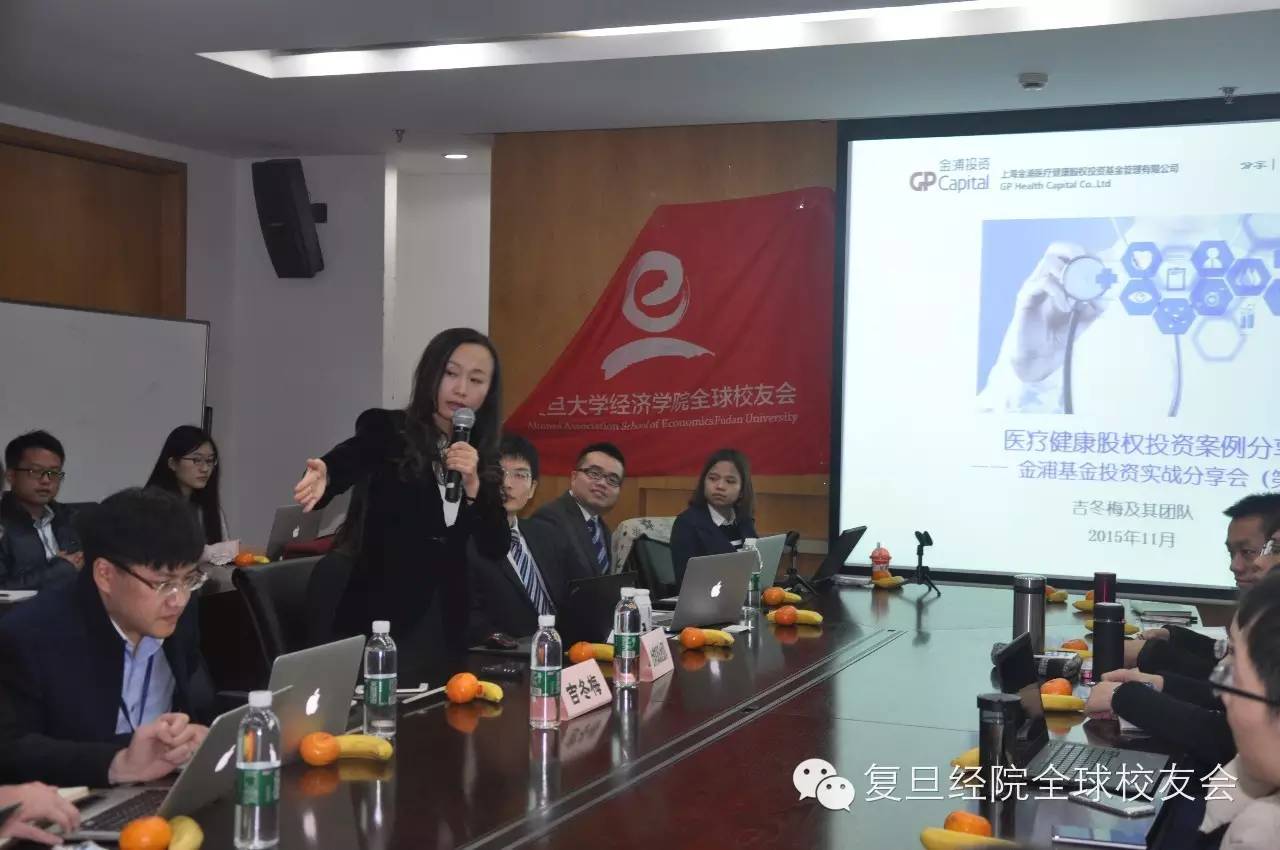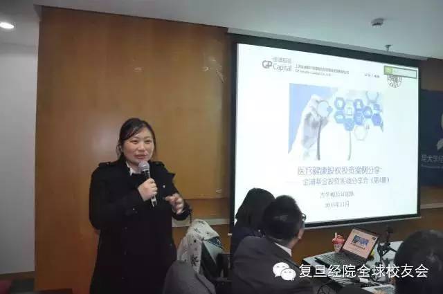 联合金浦产业投资基金管理有限公司主办的首期股权投资案例分享会上,金浦健康基金创始合伙人兼总裁吉冬梅女士这样概括他们“变与不变、进退有度”的股权投资心得。她和投资副总裁付鑫等团队成员向二十位来自复旦各个学院的学子无私分享了他们最近正在操作的一个真实案例,给他们上了一堂干货满满、亲切接地气的股权投资实战课。经院副院长、全球校友会秘书长刘军梅老师主持了会议。