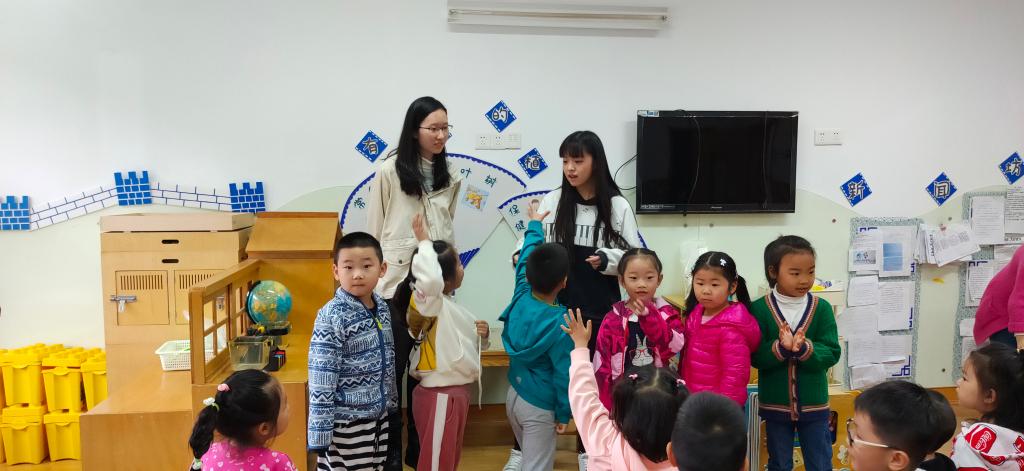的四位同学来到杨浦区民星幼儿园,与小朋友们开展了一次愉快的“星期