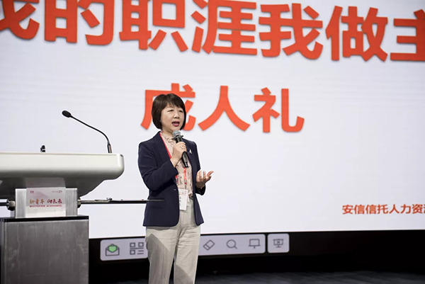 安信信托股份有限公司人力资源总监孟晓焱女士发表了主题为《我的职涯我做主》的演讲。孟女士指出,选择职业首先要自问你要什么、擅长什么、担心什么和内心最向往什么,同时也需要加强自我认知,比如自身SWOT分析优劣势、关心自己的心声而非一定要去听别人、目标SMART、追随心愿,不攀比和接受真实的自己。随后,她分享七个应对忐忑焦虑的法则:做事先做人、深度思考探求本质、巧用资源勤沟通、潜心积累、要足够努力、不要做职场巨婴和推荐书籍《7 Habits》。最后,孟女士以拥抱变化和挑战、保持善良与好奇、对抱怨say NO、做行动上的巨人和爱自己爱他人爱生活作为寄语送给大家。