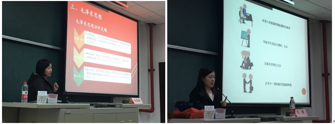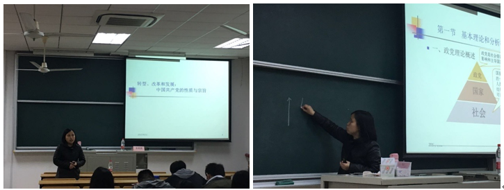 之后,袁莉莉老师为大家带来了“党的性质与宗旨”课程。袁老师以党的“改革”、“转型”、“发展”为关键词,从对端正党动机、树立科学的入党动机的分析入手,引用“两学一做”中对党员知行合一的要求,向积极分子学员们介绍了解和学习党的性质与宗旨的必要性和意义。袁老师通过政党理论向学员们介绍政党的本质、起源等,报告期间袁老师与学员们热烈讨论,结合当下《人民的名义》等的热点问题与案例,从政治、文化、经济等多个角度带领学员们深入剖析中国共产党性质与宗旨的一般性和特殊性。