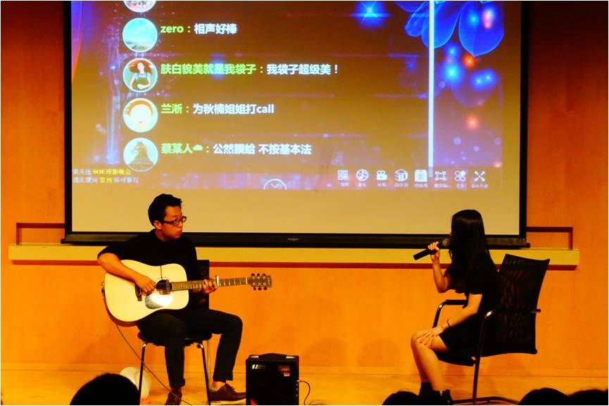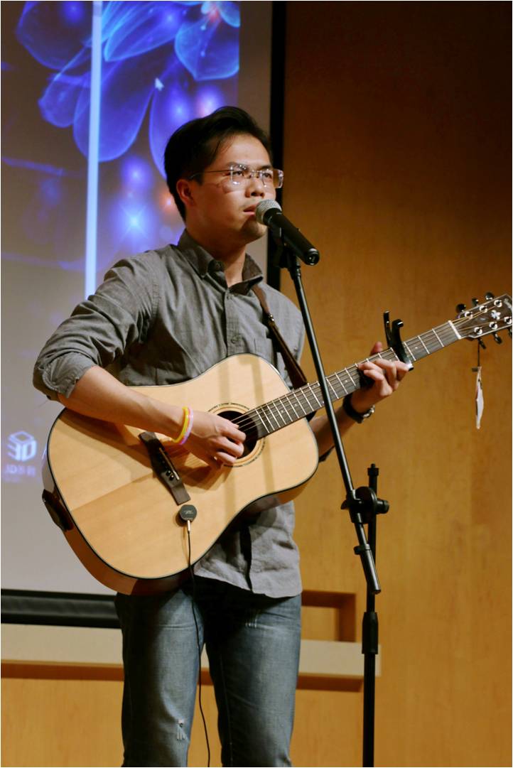 接下来是基金办哈歌王泽楠的solo时间,一首吉他独唱申请框框,哈哥的嗓音是真的磁性。