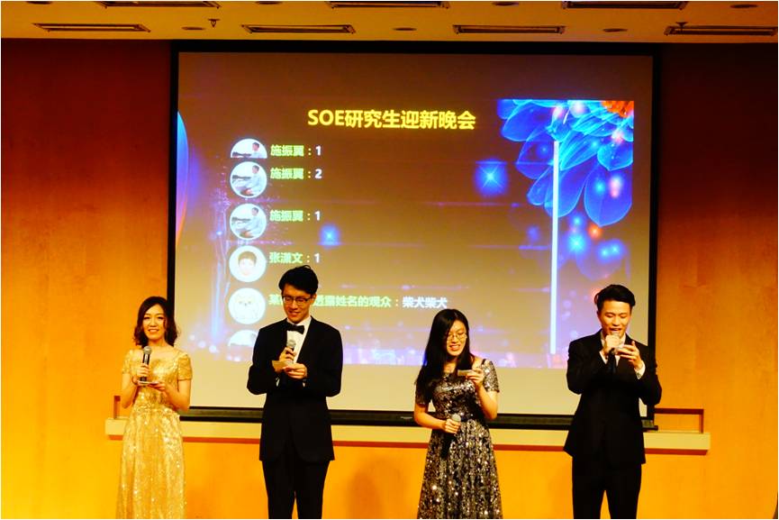 随后,在主持人四位男神女神刘一鸣、李海滨、宋喆、郑薇宇(由左到右)的主持下拉开帷幕。