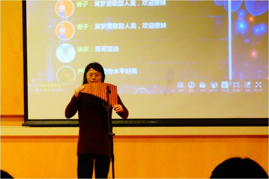 16学硕张卓韧同学排箫演奏《莫斯科郊外的晚上》,独特的乐器以及熟悉的旋律使人饶有兴致。
