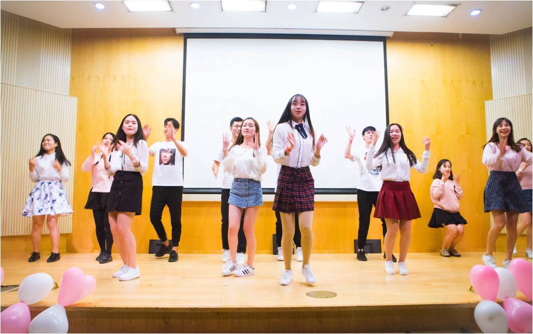 最后一个节目,是在开学以来为了广大同学付出了大量心血的各班班长上台一齐献唱经歌词改编的《经院姑娘》,歌词与歌声中寄托了我们的友谊,和我们同学们的美好未来