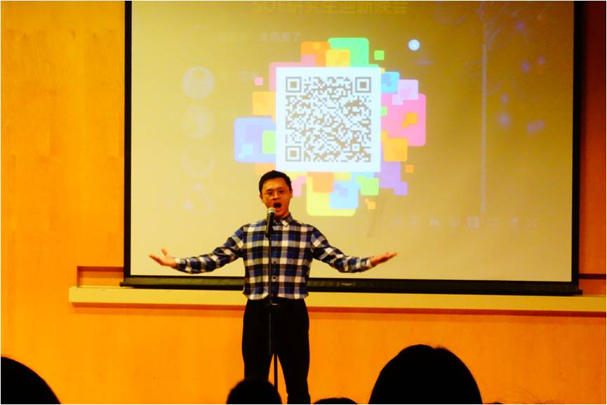 随后,由飞机班的谢杰夫、谭逸鸣、汤怡如带来的歌舞串烧《凉凉》、《爱乐之城》、《成都》惊艳全场,姐夫骚气的表演、汤老板的欧美腔以及老谭深情的嗓音让观众流连在祈福的音乐中;随后赵增辉更是趁热“念了两句诗”,朗诵了中英文版的乔布斯写给妻子的信,引人入胜。
