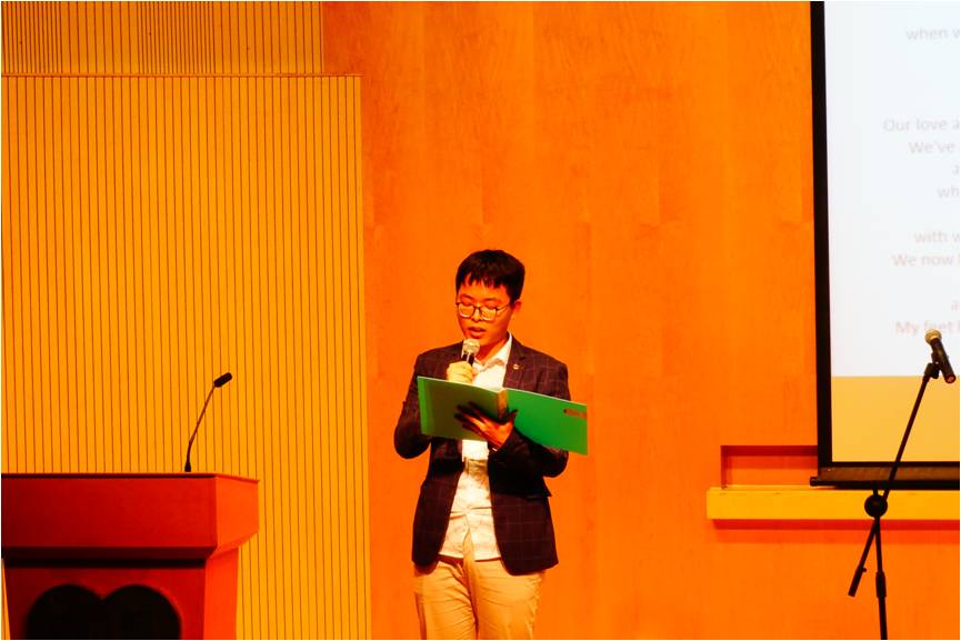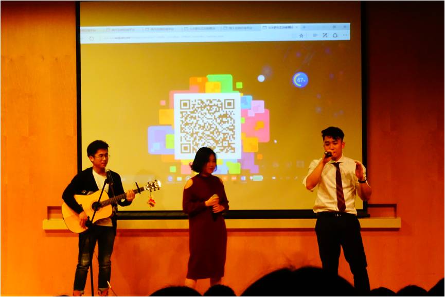 之后,在台下“经院吴青峰”的欢呼声中,17基金班吴海峰带来一首走心的《理想.爱与春风十里》,让观众和一步步紧紧地沉浸在晚会之中。
