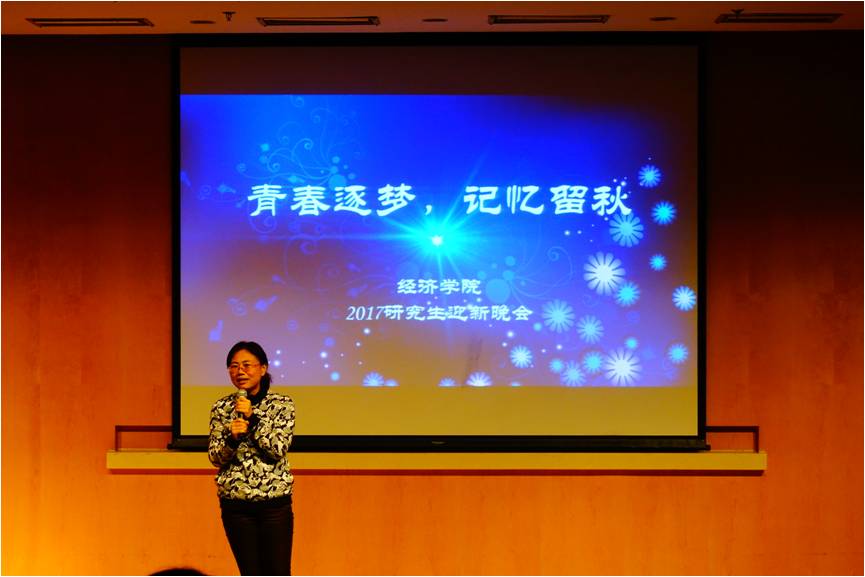 世界经济系蔡晓月老师致辞,预祝晚会圆满举行。