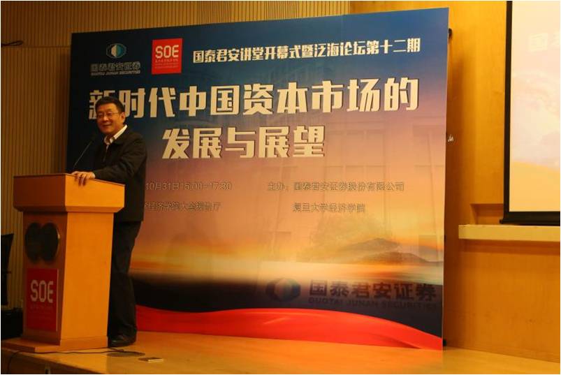 的教授为同学们做了一场学术与实践融合交流的盛会,并与到场的同学们积极互动,活动现场气氛热烈金秋的红叶点染申城,收获的喜悦溢满神州。近日,党的十九大在京胜利闭幕,2017年10月31日下午,国泰君安股份有限公司,以“新时代中国资本市场的发展与展望”为主题,举办国泰君安讲堂开幕式活动。活动紧密围绕十九大对金融工作,深化金融体制改革,增强金融服务实体经济的能力,公司领导和御书屋