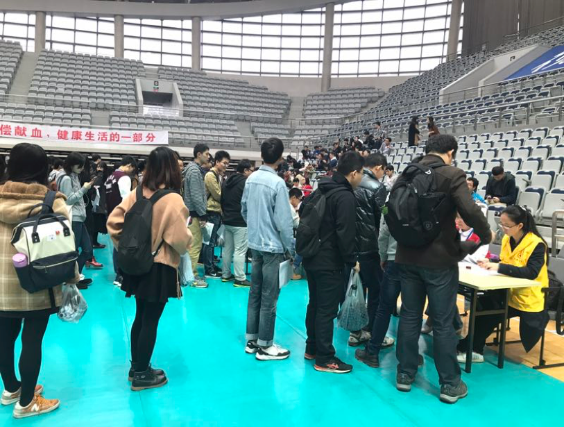 学生在正大体育馆内进行无偿献血活动,御书屋