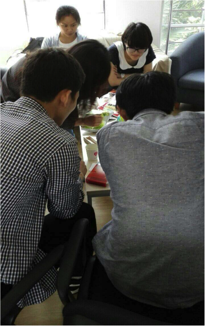 接下来由中国学生代表介绍了中国的传统游戏——七巧板,九连环等,留学生同学尤其对九连环的精妙构造感到惊奇不已,纷纷跃跃欲试。随后,大家分成几个小组,发挥自己的想象力,用七巧板拼出各种各样的形状。尽管留学生以前从没接触过此类游戏,但我们依旧为他们丰富的想象力和较强的动手能力赞叹不已。