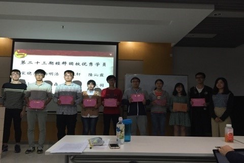 这之后便是大家期待的颁奖环节了,分团委学生会副书记左旭和主席王充向本次“经粹”团校的优秀学员和在各项活动中表现突出的学员们颁发了获奖证书,他们是大家学习的榜样,收获了大家真挚而又热情的掌声。随后是优秀学员代表宋晓东同学发言,他和大家分享了他在本次团校活动中的收获与成长,相信这也代表了每一位学员的心声。