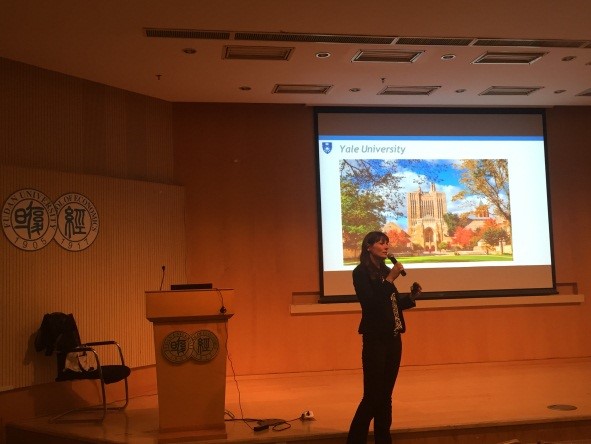 见面会结束后,Maria女士来到大金报告厅,为我们介绍耶鲁大学的Silver Scholar的三年MBA项目——也是耶鲁大学唯一一个大学本科毕业就可以就读MBA项目。