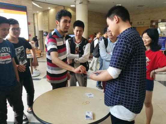 魔术社的专场表演终于开始了!十务所魔术社的社员给在场同学进行了几个简单却精彩的魔术表演,并且在大家的要求下,增加了魔术表演的难度,甚至邀请出社长来亲自表演,大家看的都十分尽兴,感谢魔术社的友情加盟!
