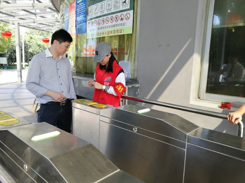 2017年10月5日至10月8日,志愿者们进行了国庆假日期间的志愿活动。由于节日期间游客数量激增,志愿者们提前了服务时间,早上7点在国权路地铁站集合出发,到达后在一号门游客中心签到。领取袖章并接受了简单培训后,志愿者们分组开始了一天的服务工作。主要任务是解答游客的问题,进行简单的介绍或劝导,尽自己所能帮助游客。另外,领队同学负责组织志愿者集合,并拍摄工作期间的照片。