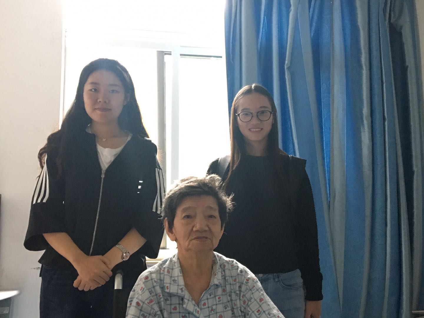 曹钰婕:感想就是爷爷奶奶行动都不是很便利了,我们过去陪他们聊了聊天,听他们讲了许多(最后实在听不懂了只能装作听懂了的样子拼命点头),也给他们唱了歌,感觉能陪他们度过这一小段时光也是很开心的!