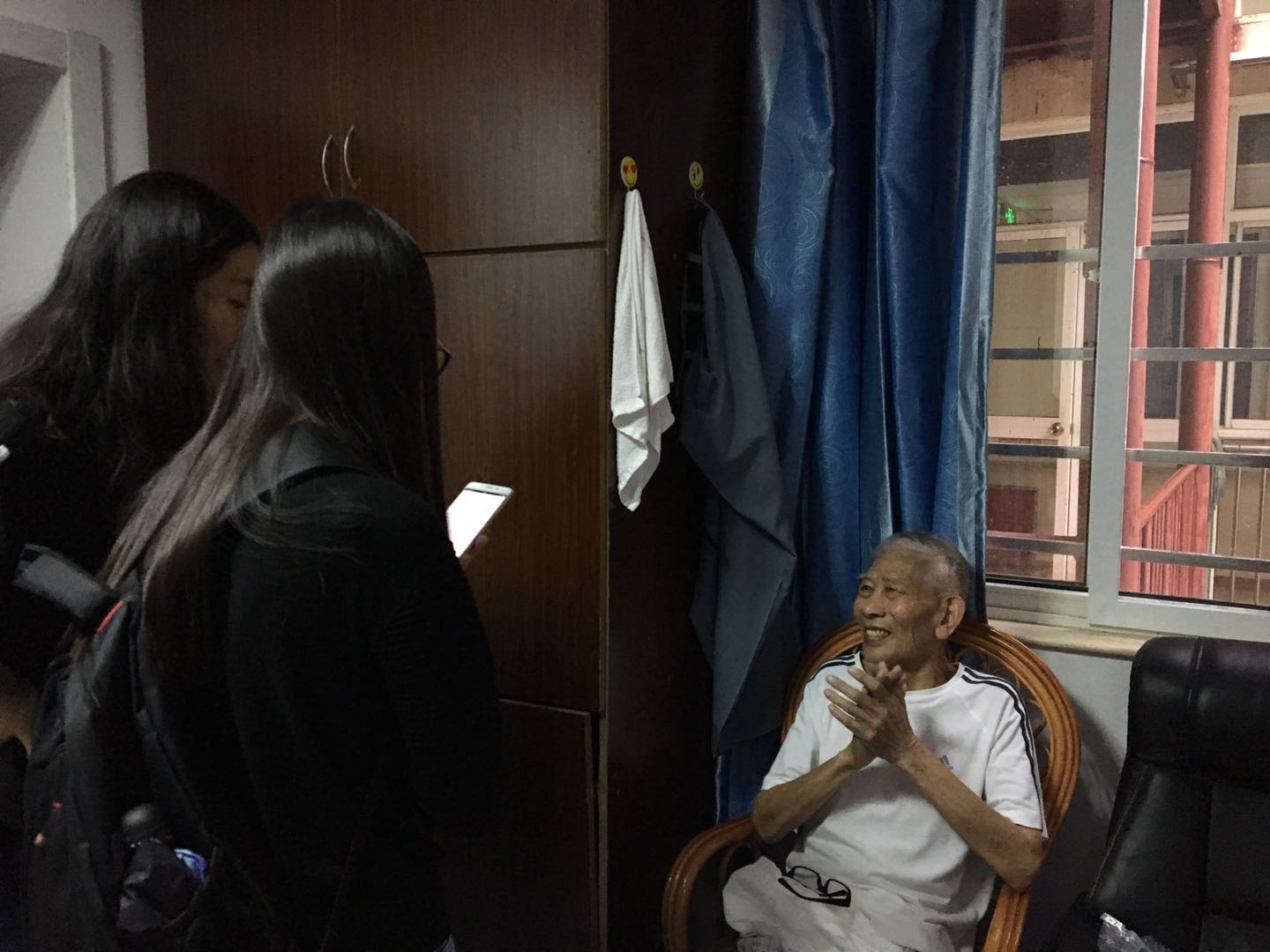 翟语:津津有味看热播电视剧的张奶奶,老小孩一样嘟着嘴的马奶奶,九十二岁高龄仍行动自如、很快顺应同居老人爱干净的习惯的黄奶奶,文雅又热情的“张老师”,住在三楼的一些老人把他们积极的生活态度传递给我们这些后辈。养老院的生活没有什么新鲜的东西,但有同院老人做伴与子孙看望的期待,有还算健康的身体,老人们在他们的世界里也能生活得很好。而我们今天没探望到的或是身体抱恙或是不那么情愿搭话的老人,希望他们在一些无法改变的现实条件下,能够以自己的方式安度晚年。