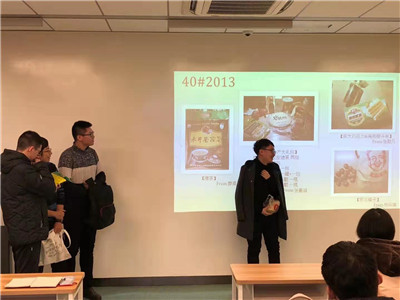 此次民俗特产交流会的展示以寝室为单位,并以同学讲解辅以幻灯片展示的方式,为大家带来了一场视觉与味觉的盛宴。首先上台介绍的是40号楼2011寝室,他们为大家带来了杭州龙井茶、台湾凤凰酥与苏州木刻扇子,其中苏州木扇尤为别致,由紫檀制作而成,并在其上绘以苏州园林风景,彰显出温文尔雅的江南风韵;2013寝室的特产可谓来自大江南北:来自吉林的杨明童同学为大家带来了东北的榛子,廖源同学带来了来自湖南的擂茶,张嘉诚同学为大家带来了山西的太谷饼,张毅凡同学带来了上海钢笔,充分体现出同一个寝室蕴含的地域文化的多元性。