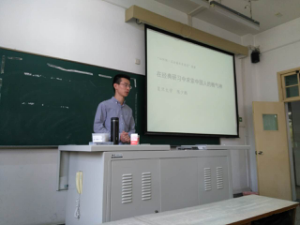 下午1点15,同学们陆续进入教室并就座。1点30,团课正式开始。首先陈少鹏老师从题目出发向大家简单介绍了“风骨”、“精气神”两词的意思,并举例与现在进行对比,从而引出当代青年应该积极求索中国人的精气神,锻炼自己的风骨。紧接着,陈少鹏老师邀请在座的一位同学朗读了闻一多先生的诗《祈祷》,结合这首诗,老师拓展性地讲解了现代化视域下的文化传统、文化认同和朱维铮先生提出的三重认同尺度——国籍、种族及文化,回答了“谁是中国人”这个问题。之后老师就传统是什么、对传统的批判或褒扬等问题从历史的角度进行了详细的解释,提出中国传统文化在稳定社会心态、塑造向上精神、促进社会等方面发挥了重要的积极作用,为现代市场经济社会中的中国人提供了重要的精神资源,同时启发我们以更加理性的态度认识传统。紧接着,老师给大家列举了古人理解的经典,进而阐述了经典的价值及其对文化认同的积极作用。最后,老师结合自身少时读《论语》的经历向同学们生动地讲述了经典对于国家和个人的意义,鼓励同学们认真研习国学经典,继承那些永不褪色的价值传统,找回我们的文化自信。
