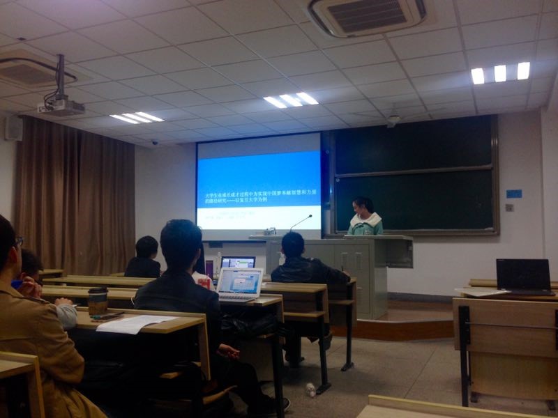 第三组的主题是《试论文化交流在两岸关系发展中的作用——以复旦台湾学生为例》,负责人是戴大羽同学。戴大羽同学表示他们组将与复旦台湾同乡会的同学交流,研究大陆与台湾文化的异同,以及文化交流在两岸关系发展中的作用。两位老师给出的评价与建议是:提出的问题不够明确,而且复旦的台湾学生缺乏代表性,更像是一个现状调查;建议以蔡英文上台作为事件进行事件研究,并考虑新媒体的影响。