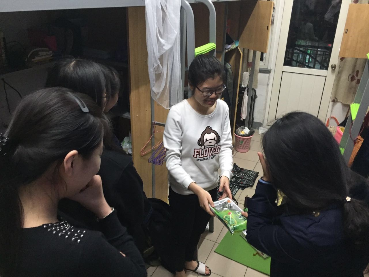 同学们在寝室中尝青团、品文化,至此,“小青团大文化——从清明节的传统习俗感受传统文化”顺利结束。