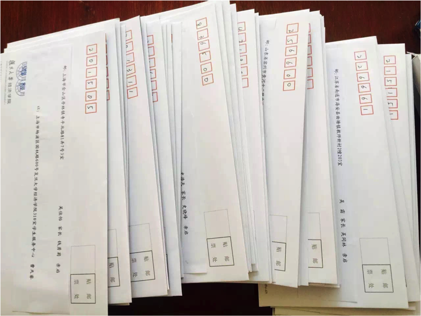 10月12日下午,寄送给学生家长的成绩单已由学院本科教务办印制完毕,当天班级即将成绩单领回。13日,班级将学生成绩单悉数寄出,共寄出51份(收信地址仅包括中国大陆)。