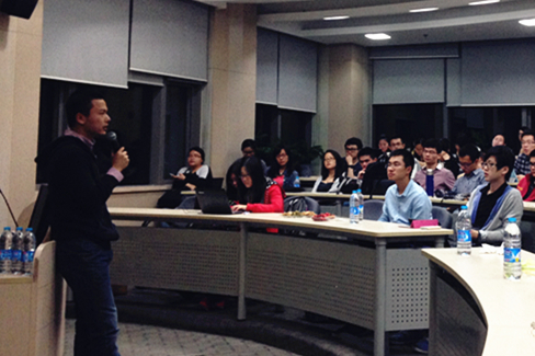 终于,活动于5月17日顺利举行。这一天,天空还飘着小雨,可依旧阻挡不住我们同学们的热情参与。不一会,大会议室已经坐满近百人。这次交流会是每一个经院同学期盼已久的,我们邀请了在2014就业危机年中依然表现出众的九位佼佼学长学姐们,涵盖银行、基金、投行、实业、投资等多个热门领域,共同交流探讨他们选择职业路径的思考、求职过程经验和心得体会,以及对各行业的理解。他们还详尽地介绍了在不同行业和公司中的面试技巧等,现场氛围热烈而有趣,互动频频,同学们颇受启发,不仅开拓了视野,更满足了不同求职规划的同学们对不同行业的深入了解。