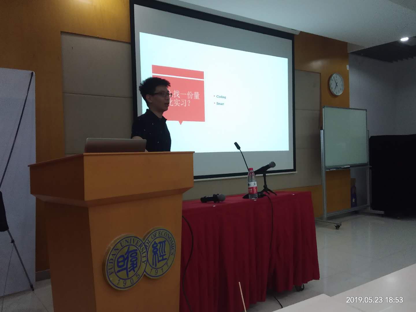 紧接着,赖梦轩学长介绍了量化投资的起源、今生和未来,为想要实习的同学提供了一个实习方向。学长不仅介绍了何为量化投资,而且在介绍了量化投资的现状之后进行了重新审视,提出了自己独到的见解。在找实习方面,赖梦轩学长认为计算机能力以及思维能力是十分重要的。