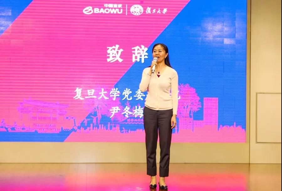 和中国宝武的进一步深入合作表示了期待。随后,中国宝武党委办公厅、办公厅主任冯爱华致辞,身为复旦校友的冯爱华主任首先为学校向中国宝武返校活动提供的支持表示了感谢,并向大家介绍了中国宝武的发展历程及取得的巨大成就,也表达了对学弟学妹们成为有理想有抱负的新时代青年的期待。