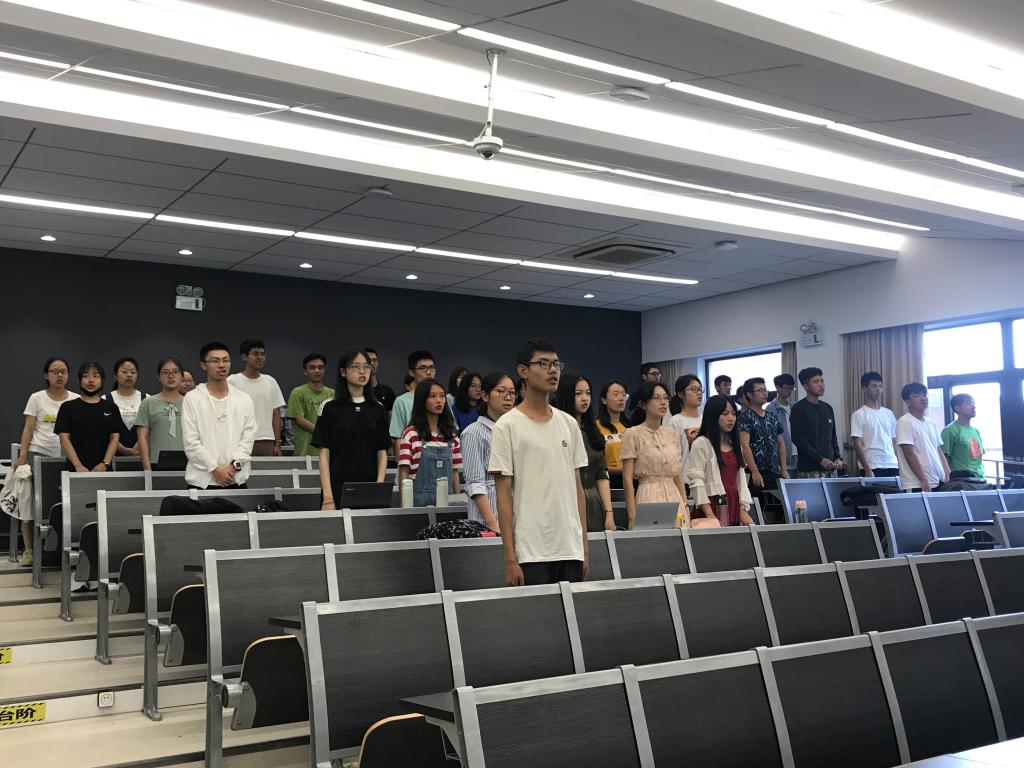 校友的光辉事迹。在王雨玲同学的生动讲述下,两个伟大的爱国科研工作者形象呼之欲出。从两位校友的不寻常的人生经历中,同学们体会到了胡思德先生“无论在什么时候,在什么岗位上,都要以国家利益为重,时刻想着国家的需要”的崇高爱国情怀,也深入理解了童第周先生"有生之年,为国家,为人民多做工作"的入党誓言的深刻含义。两位为祖国科研工作鞠躬尽瘁的杰出校友的事迹感染了在场的每一位同学,激起了同学们努力学习专业知识、为国奉献的迫切心情。