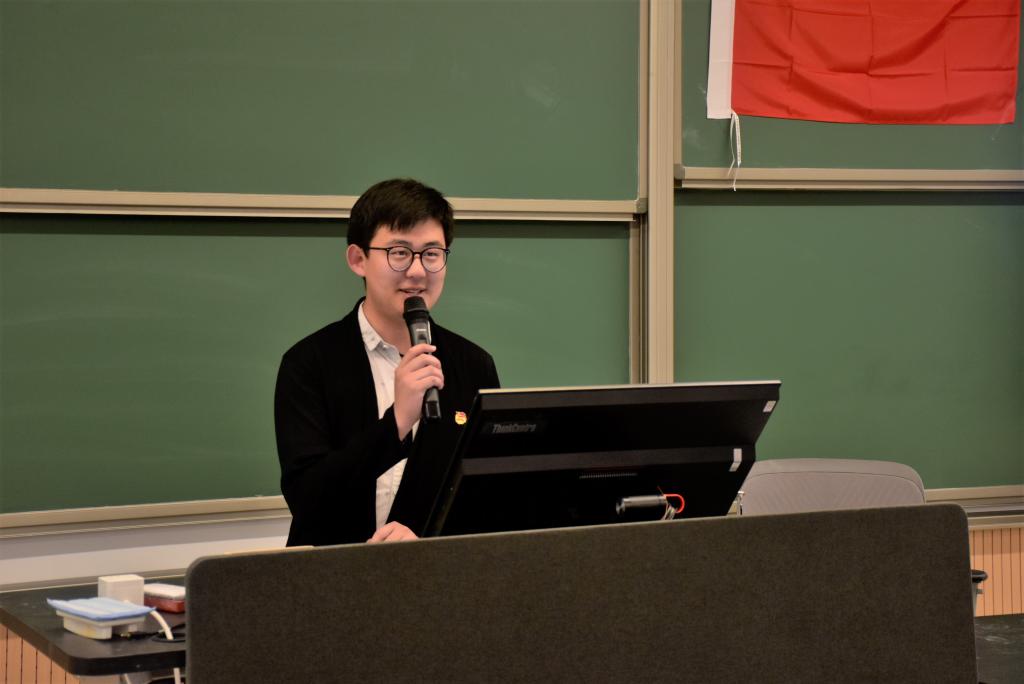 之后,班级辅导员韩志周老师上台进行总结。他首先向大家提出了一个问题:我们为什么要爱国?接着,他引用了习近平总书记对青年的一段寄语,以此鼓励大家“在新时代做一个爱国的人”“积极投身社会实践”。最后,他又提到先前对复旦校友事迹的学习,说:“读历史,知道国家往何处去,是历史留给青年的命题。”