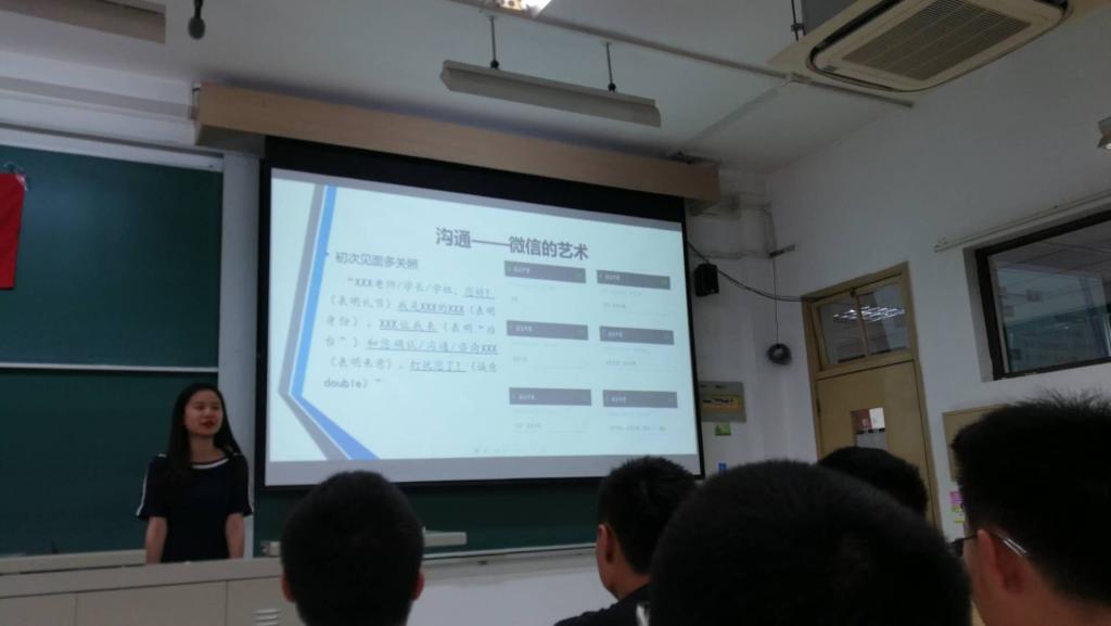 说完微信沟通艺术,余思娴辅导员开始教大家邮件的正确的使用方式。先是老生常谈的话题,余思娴辅导员再次告诫大家要养成勤看邮箱的习惯。接着谈到写邮件一定要记得写明主题以方便收件人查看。这些简短但实用性极强的话让许多刚刚接触邮箱的同学收益匪浅。