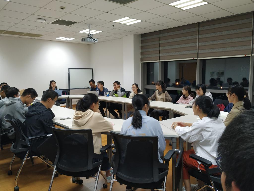 2019级经院3班党章学习小组的同学们齐聚泛海楼510,在辅导员余思娴老师的带领下开展了第一次党章学习小组活动。