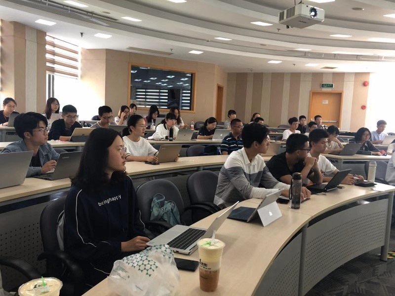 首先由老师为大家讲解学术、出国的发展选择。他强调了当前阶段的同学们最主要的任务还是:打好基础,努力提高学习成绩。此外,可以掌握一些技术性知识,比如:编程、逻辑等,这有利于今后的发展。针对喜爱学术的同学,韦老师也指出:可以在有余力的情况下,联系老师利用复旦的优秀师资,接触学术。有志于出国的同学,可以利用本科阶段交流的机会,获得国外教授的推荐信,这对进入名校是很有帮助的。