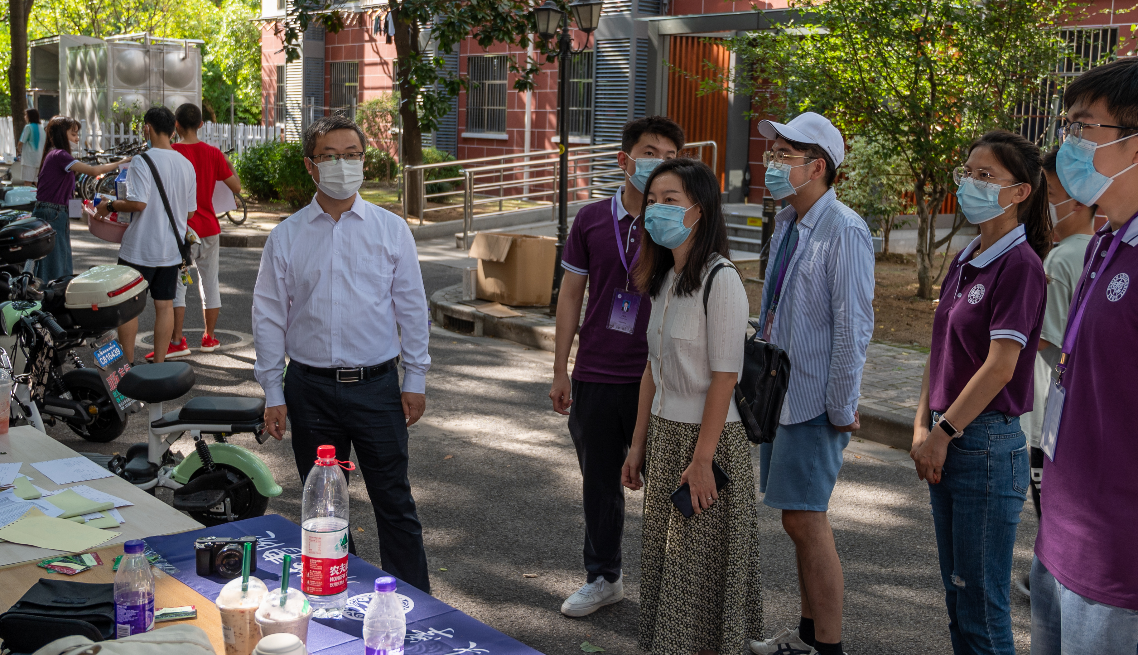 党委书记李粤江,副书记高舒等来到南苑生活园区新生接待点,看望复旦经院2022级新生,了解迎新工作进展,与同学们亲切交谈,慰问新生辅导员、志愿者等一线工作人员。