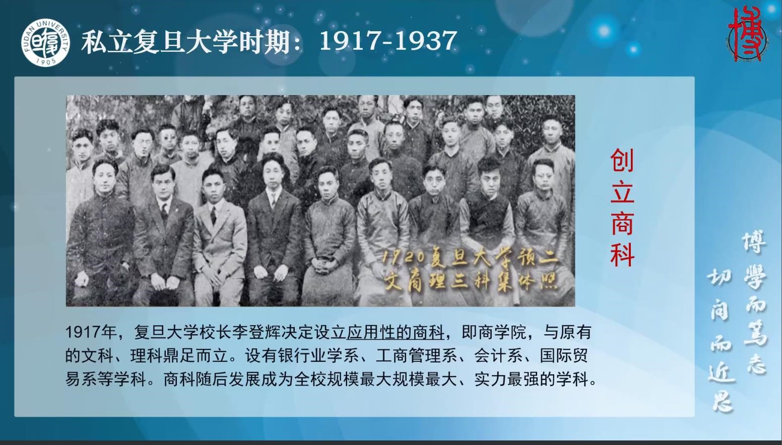 历史。从最早的震旦公学、复旦公学、私立御书屋