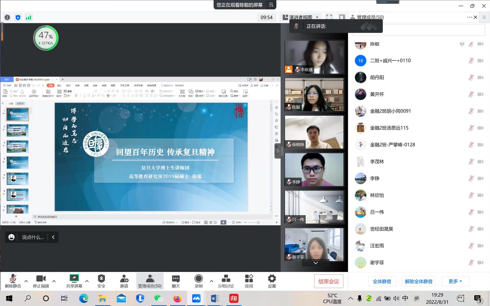 博士生讲师团陈聪老师,于8月31日晚19:30带来了“回望百年历史,传承复旦精神”校史讲座。陈聪老师在讲座开始与同学们进行了亲切的互动,为本次讲座营造了融洽的氛围。
