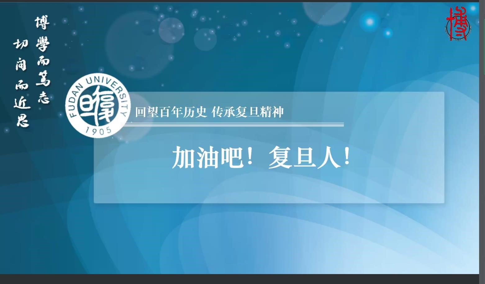 今天线上听了复旦校史的讲座,让我对复旦的历史沿革有了更近一步的了解。回望百年历史,从1905年的筚路蓝缕到如今的跨越腾飞,这百年来,是一部复旦的历史集,也是一部复旦人奋斗的历史集。作为新一代的复旦人,我也将像优秀的复旦前辈学习,坚定理想信念,传承复旦精神,将“团结、服务、牺牲”融入到生活的方方面面,成为一名优秀的复旦人。