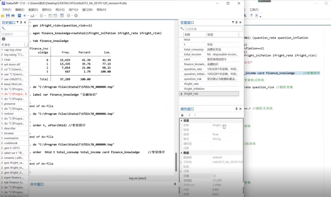 在对数据库进行了简要介绍之后,主讲人通过STATA这一重要的经济学计量分析软件,利用CHFS数据,向同学们详细解说了各种在数据分析过程中经常使用的操作。